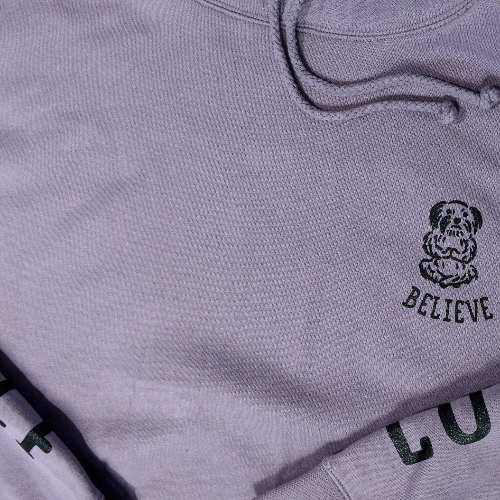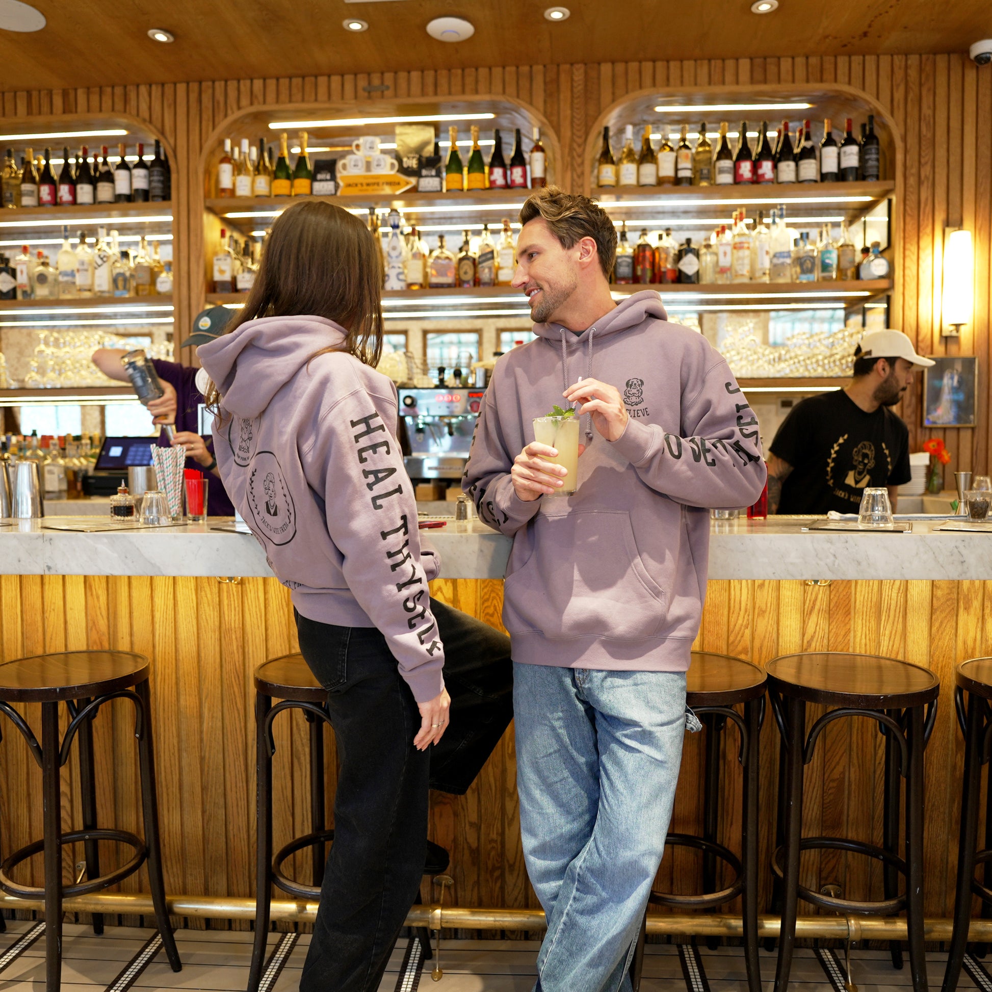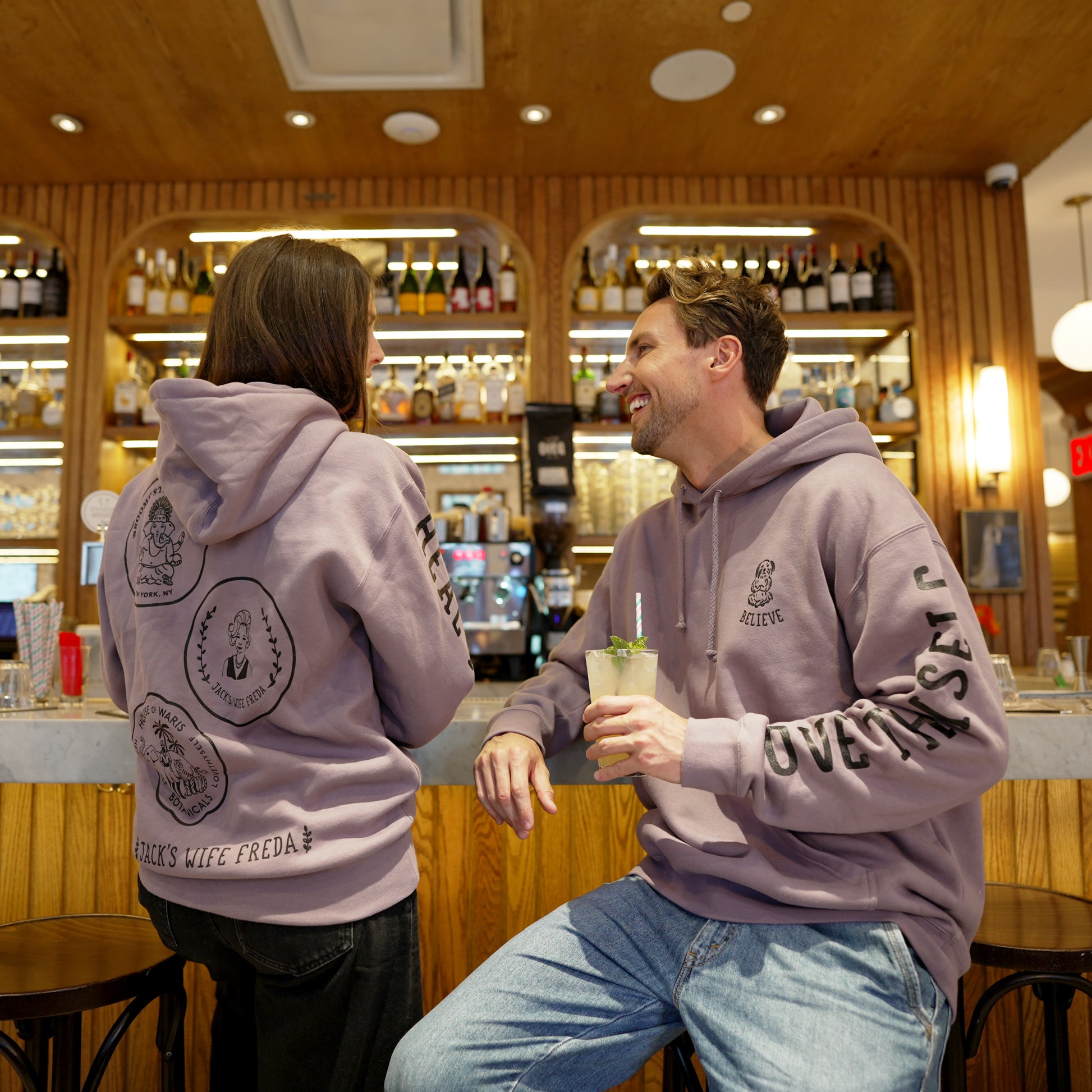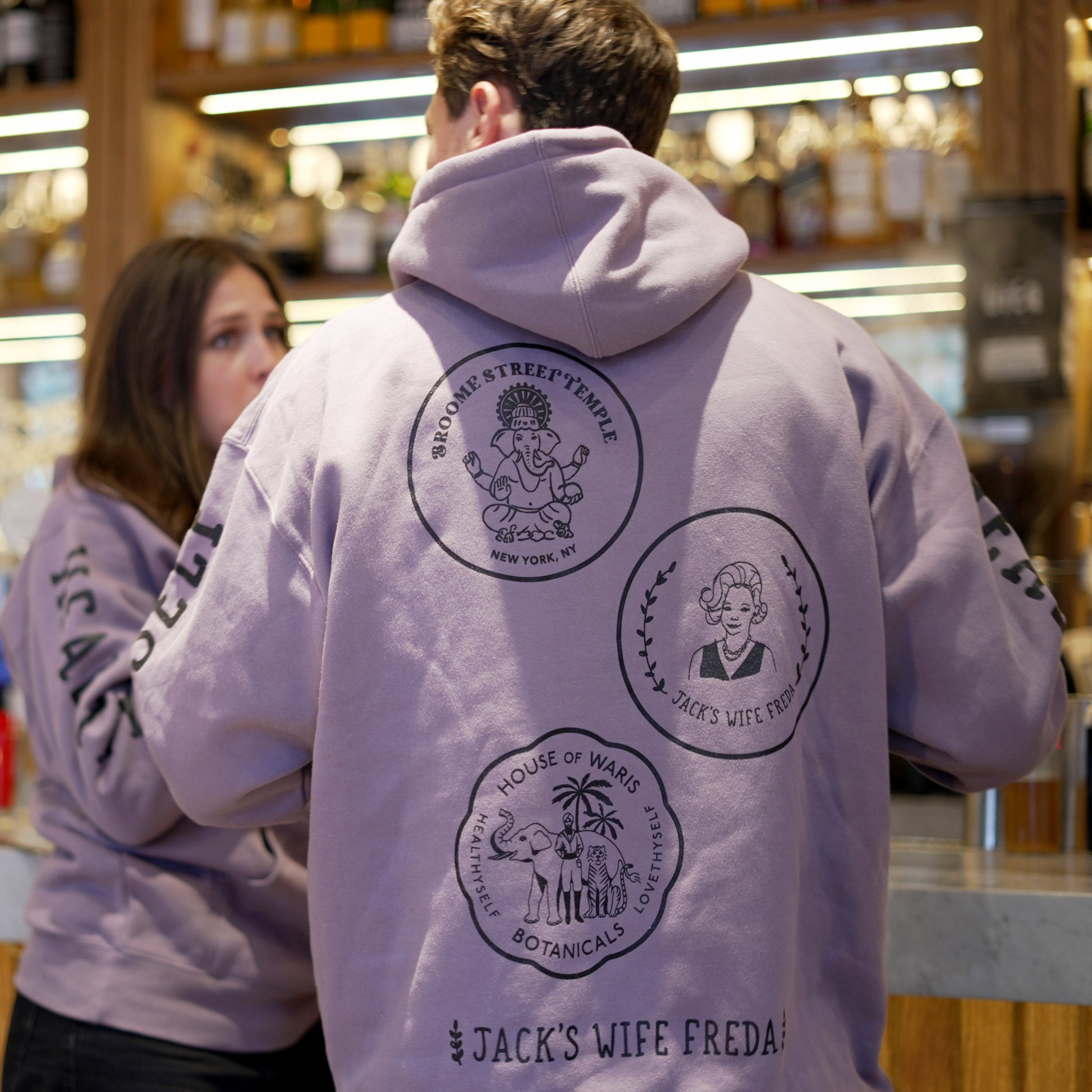 This hoodie is a true collaboration, made with our dear friends Eddie Stern from Broome St. Temple Yoga and Waris Ahluwalia of House of Waris Botanicals (and much more). We are friends, neighbors, and love coming together for gatherings, celebrations, and good times. Plus, they're hilarious, so this hoodie always makes me smile. Super cozy for chilly days in chic lavender.