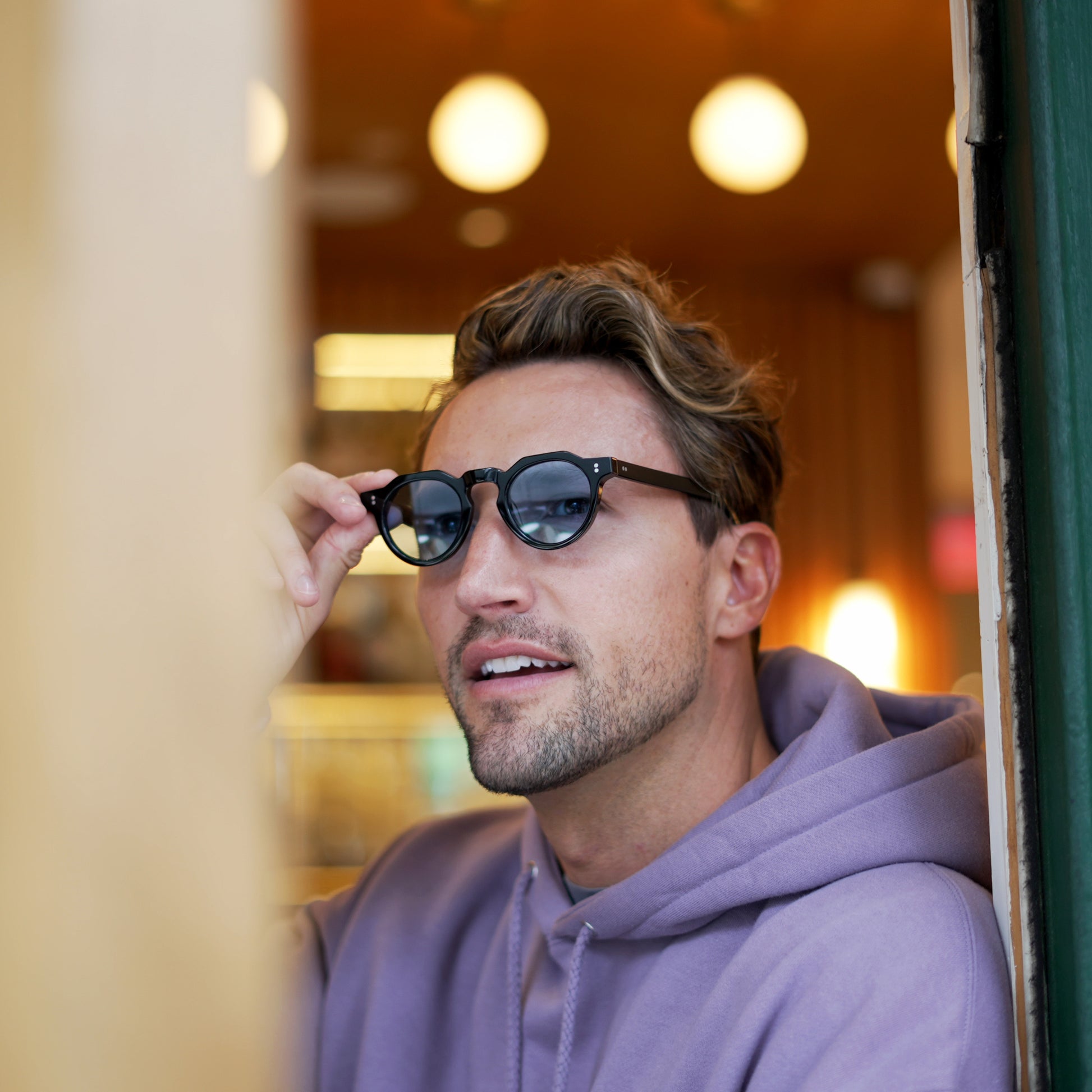 Iconic premium acetate frame, wide edges and temples.